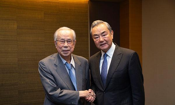 这次去日本访问的时候,王毅外交部长不光跟石破茂见了面,还专门去看望了快九十岁的日本以前的首相福田康夫。